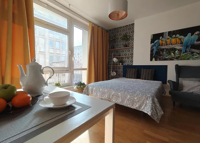 Die Apartments verfügt über ein Wasserkocher, eine Kaffee-/Teemaschine und ein Kühlschrank. Diese Apartments ist in der Nähe von der Bushaltestelle Plac Defilad.